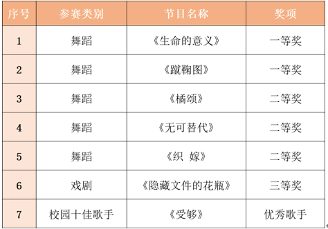近日,2025年浙江省大学生艺术节落下帷幕。我校选送作品荣获一等奖2项、二等奖3项、三等奖1项、优秀歌手1项,学校获“优秀组织奖”,舞蹈节目《生命的意义》受邀在闭幕式晚会登台展示。