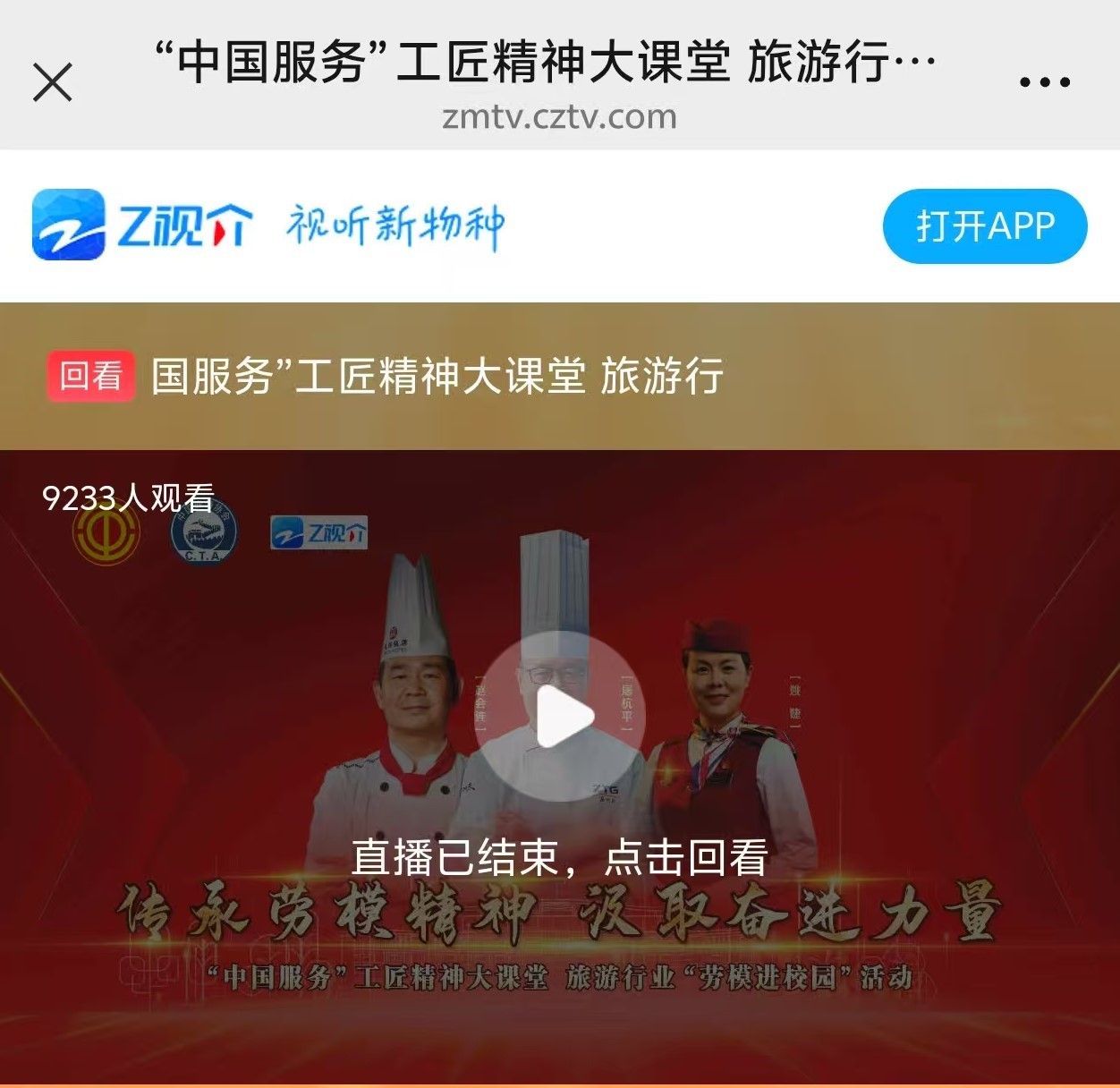 《浙江电视台》教科影视频道直播:“中国服务”工匠精神大课堂 旅游行业“劳模进校园”活动