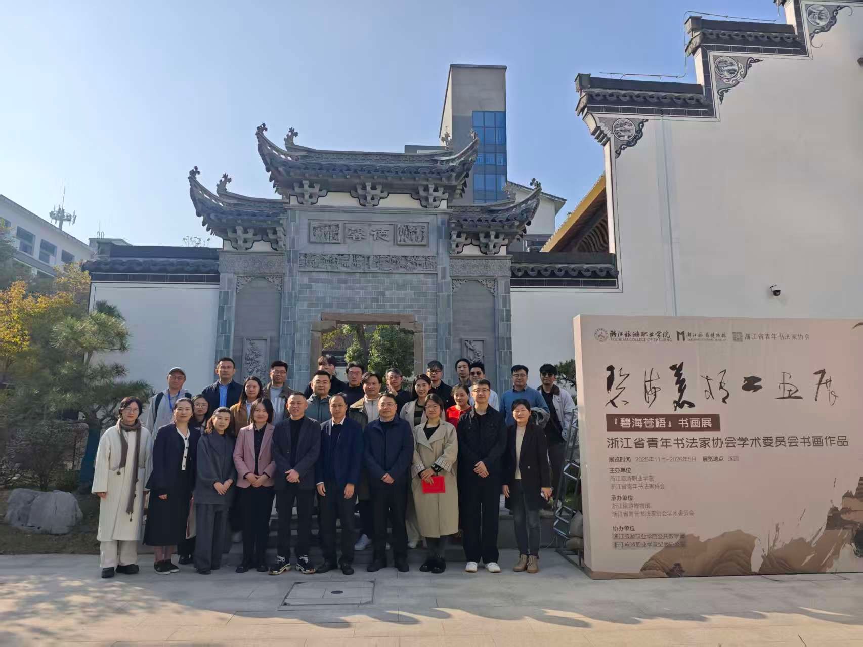 11月22日,浙江省青年书法家协会学术委员会2025年度会议暨“碧海苍梧”书画作品展在我校成功举行。本次活动由我校与浙江省青年书法家协会共同主办,浙江旅游博物馆、省青年书协学术委员会联合承办,我校公共教学部、纪委办公室协办。