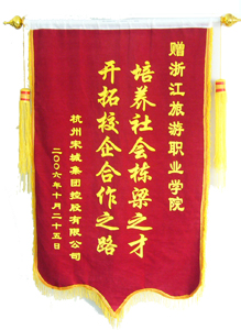 近日,我院收到杭州宋城集团控股有限公司送来的锦旗,锦旗上写着“培养社会栋梁之才 开拓校企合作之路”十六个字。