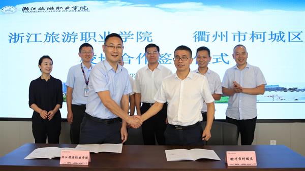 座谈会上,我校领导对地方县政府的到访表示热烈欢迎,并介绍了学校基本情况和办学特色。双方就助力山区26县共同富裕工作、校地合作、景区创建、文旅人才培养等方面进行深入交流与探讨。浙江省文化和旅游发展研究院副院长(主持工作)王相华与衢州市柯城区副区长郑益红代表校地双方签订了校地合作框架协议。