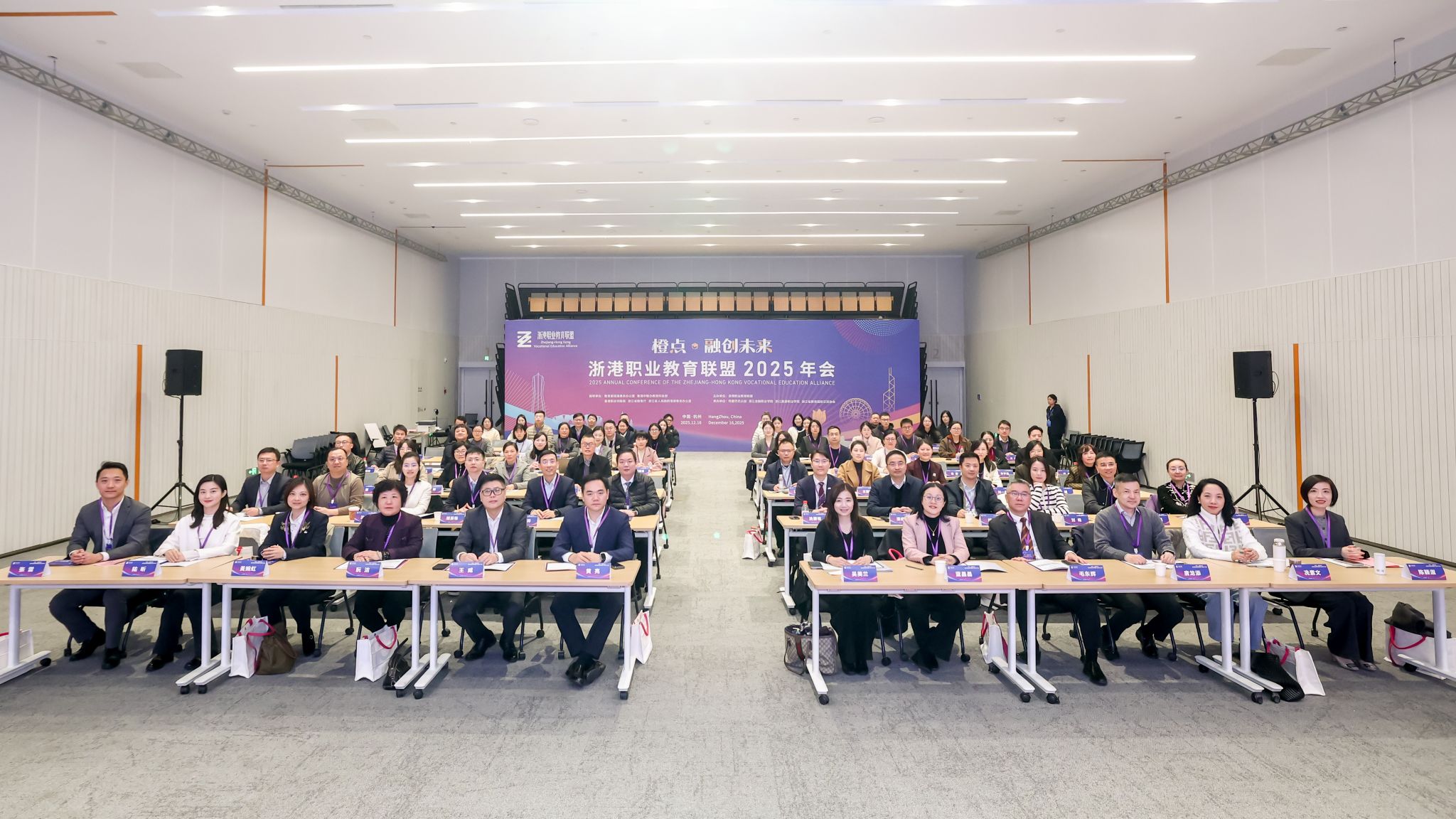 12月16日,“橙点·融创未来”浙港职业教育联盟2025年会在阿里巴巴集团举行。本次年会由教育部港澳台事务办公室、香港职业训练局、浙江省教育厅、浙江省人民政府港澳事务办公室共同指导,阿里巴巴公益、浙江金融职业学院与我校联合承办。省教育厅党组成员、省教育考试院党委书记黄亮,校党委书记毛东辉,省外办领事处处长、港澳处负责人阮洁,香港职业训练局香港专业教育学院助理院长兼商业系主任吴美兰,阿里巴巴集团公益副总裁王威,浙江省香港商会会长唐龙添等出席年会。教育部港澳台事务办公室副主任舒刚波视频致辞。