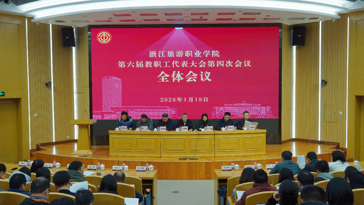会上,校长杜兰晓作题为《植根行业沃土 勇担育人使命 奋力谱写旅游职教高质量发展新篇章》的工作报告。她回顾了学校过去一年取得的标志性成果以及工作成效。她表示,2026年学校将以“十五五”规划编制实施为牵引,以第二期“双高建设计划”为引擎,以更加昂扬的斗志、更加务实的作风,为浙江高质量发展建设共同富裕示范区、率先呈现基本实现社会主义现代化的生动图景贡献“浙旅力量”。