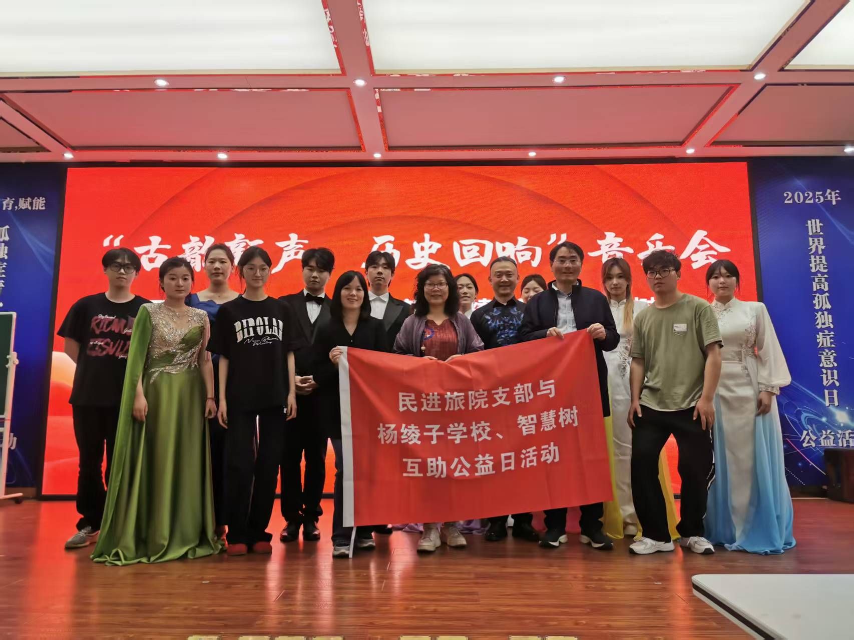 为庆祝中国民主促进会成立80周年,积极响应2025年“民进公益日”号召,4月17日下午,民进浙江旅游职业学院支部组织音乐表演团队赴杭州市杨绫子学校举办了一场主题为“智慧树下共成长,公益互助暖童心”的公益音乐表演活动。活动以音乐为纽带,为特殊教育学校——杭州市杨绫子学校的师生们带来了一场视听盛宴,传递了社会的关怀与温暖。此次活动由民进浙江旅游职业学院支部策划,并得到励睿旅游策划工作室和智慧树基地的支持。