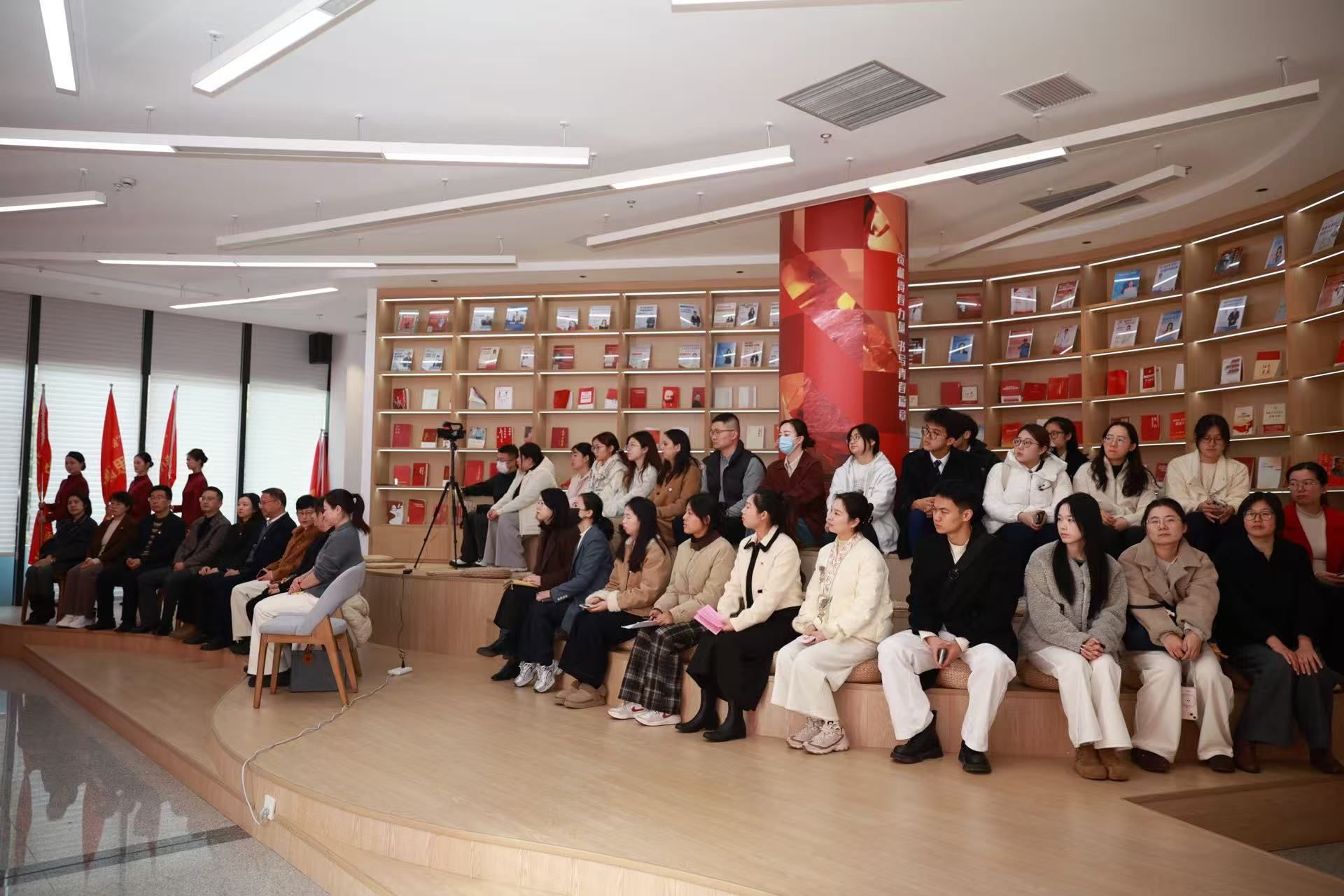 为深入推进习近平新时代中国特色社会主义思想入脑入心入课堂,进一步学习宣传贯彻党的二十届四中全会精神和浙江省委十五届八次全会精神,12月12日,学校“新时代真理的味道·浙旅红”宣讲团成立仪式在党群服务中心青年理论宣讲室举行。学校党委副书记李向晟出席活动,党委委员、宣传统战部部长马盈主持活动。校院两级宣传队伍师生代表参加活动。